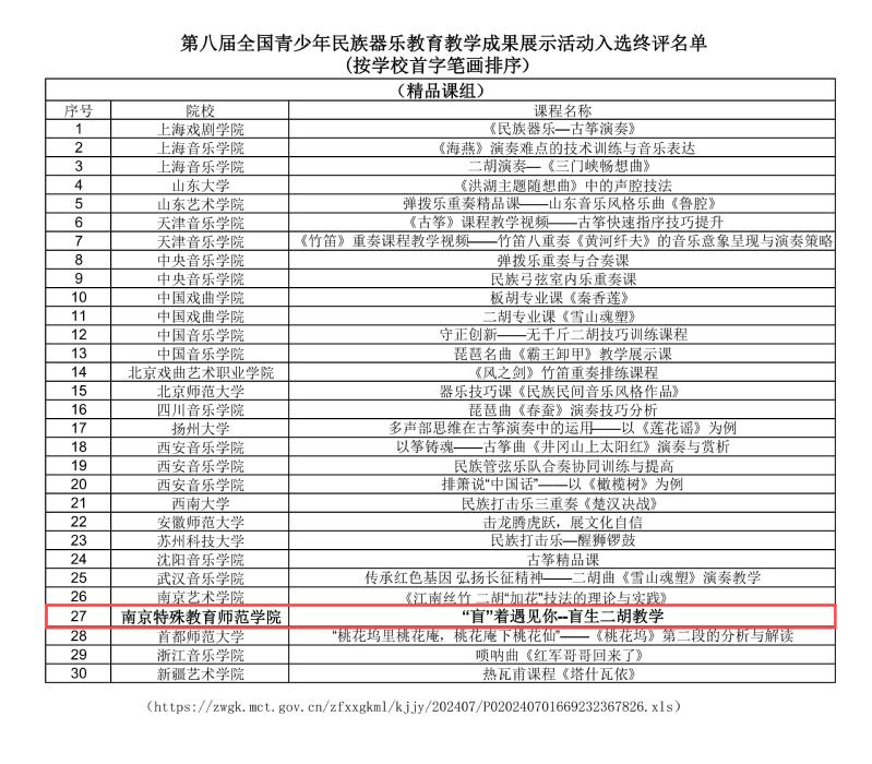 2024年8月19日,“茉莉花开·第八届全国青少年民族器乐公司产品成果现场展示活动”在南京拉开帷幕。BETVLCTOR伟德国际1946音乐治疗系主任段冀州博士的教师精品课“‘盲着遇见你’—盲生二胡教学”成功入围此次全国终评展演,并于8月21日下午在南京艺术公司音乐公司演奏厅进行现场展演。