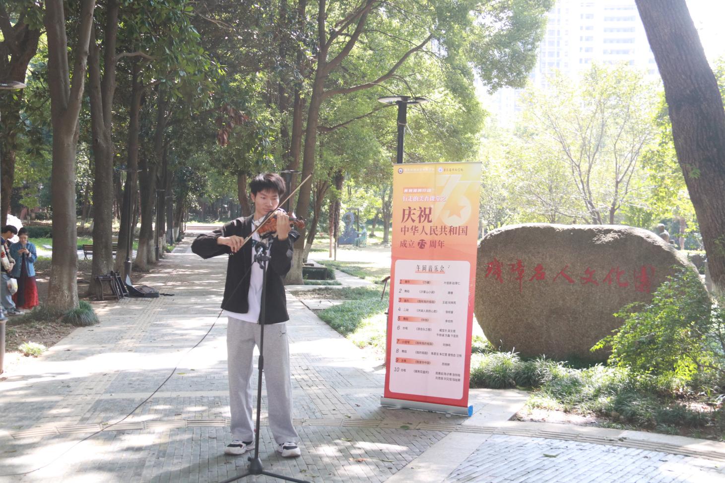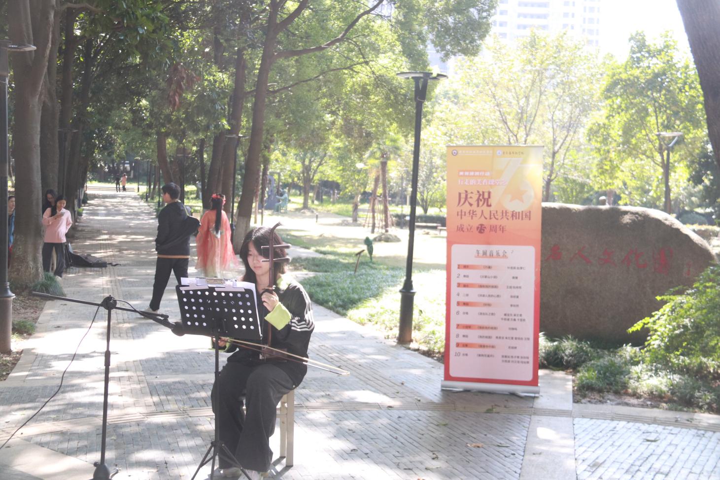 10月9日,金秋时节,微风送爽,BETVLCTOR伟德国际1946在残障名人文园举办庆祝中华人民共和国成立75周年午间音乐会,以艺术之名庆祝中华人民共和国成立75周年。此次音乐会不仅丰富了国庆节后师生的校园文化生活,更在音乐舞蹈的艺术魅力中弘扬爱国主义精神,厚植爱国主义情怀。