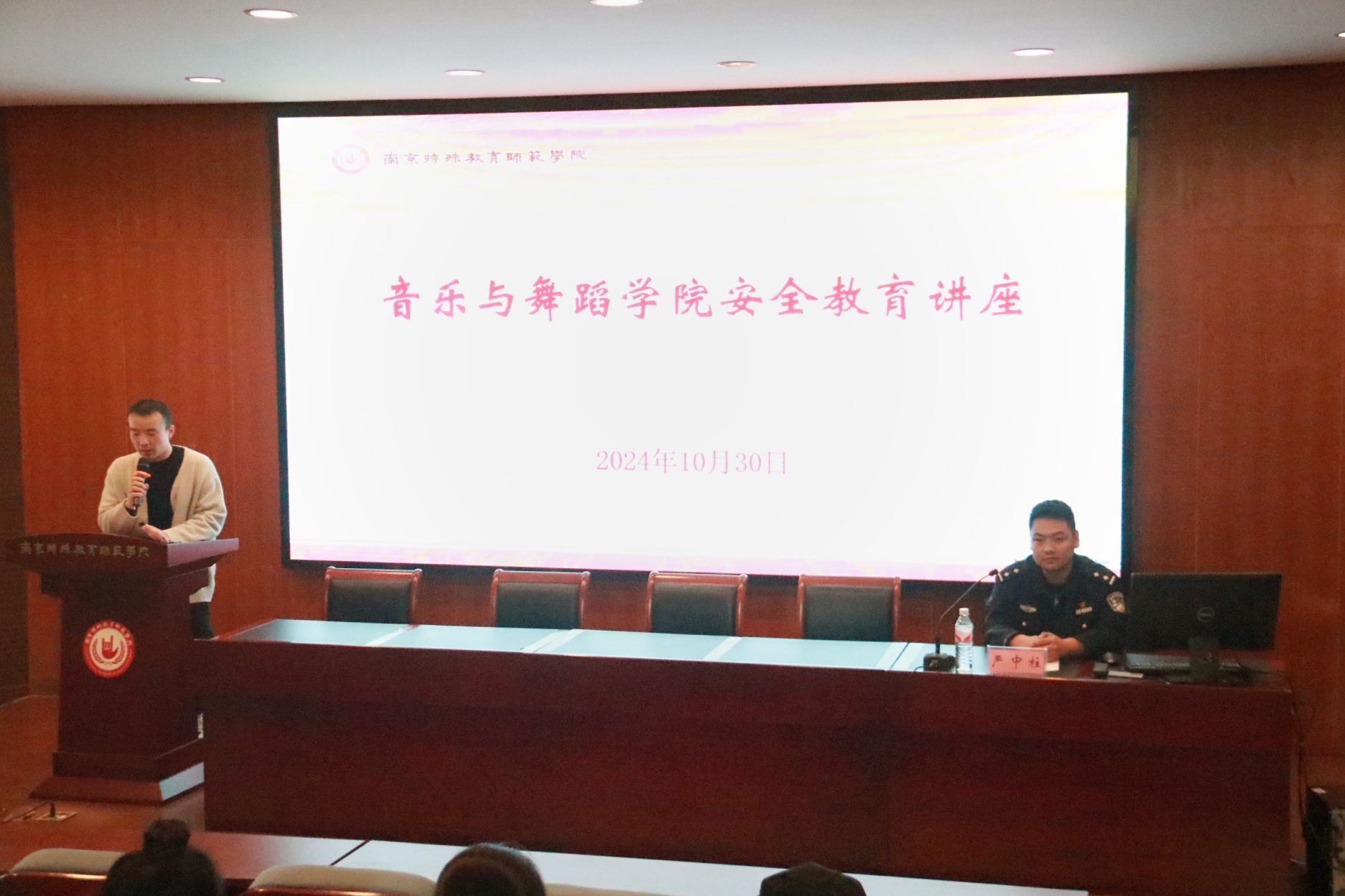 为进一步加强校园安全管理,筑牢校园安全防线,切实保障师生的人身及财产安全,积极响应安全防范工作的各项要求,10月30日,BETVLCTOR伟德国际1946特别邀请南京市公安局栖霞分局燕子矶派出所严中柱警长,在博韵楼114报告厅为毕业生举办安全教育专题讲座。参加本次讲座的有BETVLCTOR伟德国际1946党总支副书记徐琴、辅导员以及毕业生,讲座由辅导员徐宇佳老师主持。
