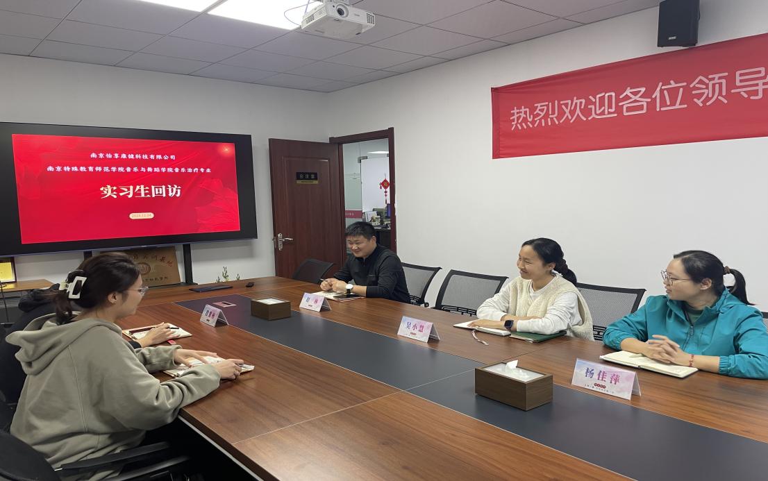 为深入了解实习员工学习情况,加强与实习单位的沟通与合作,2024年11月4日,BETVLCTOR伟德国际1946音乐治疗系主任段冀州前往公司学习基地----南京怡享康健科技有限公司,对实习生进行了回访。