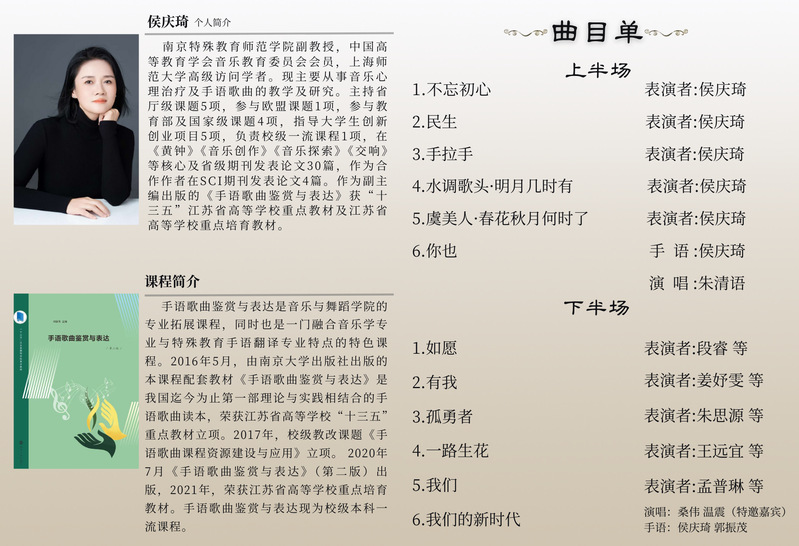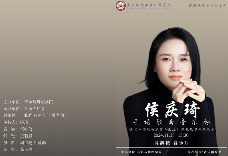 【活动预告】课程思政音乐会系列之——侯庆琦手语歌曲音乐会暨《手语歌曲鉴赏与表达》课程教学成果展示
