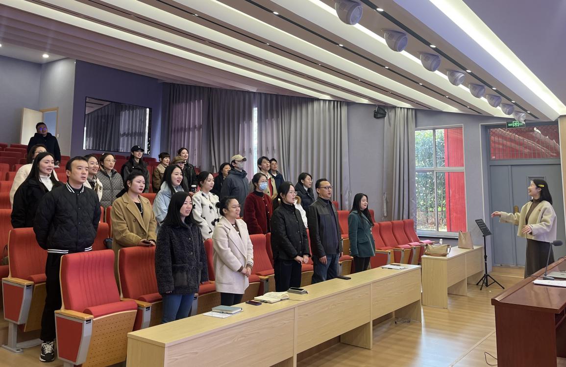 在党课的尾声,张敏讷老师带领全体党员齐声合唱《我的祖国》。随着激昂的旋律回荡在博韵楼音乐厅,党员们心潮澎湃,热血沸腾,在那悠扬而激烈的歌声中共同表达了对祖国的深情厚爱与对未来光明前景的期许。她号召大家要以历史为镜,铭记那些英勇的先辈们为国家和民族所做出的巨大牺牲,并在新时代继续发扬这种无畏精神,坚定不移地为实现中华民族的伟大复兴而奋斗。