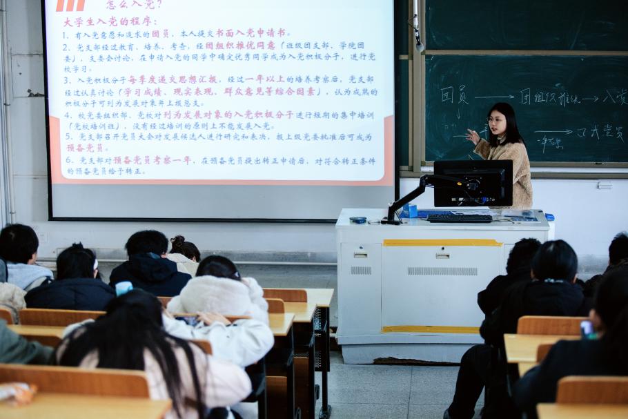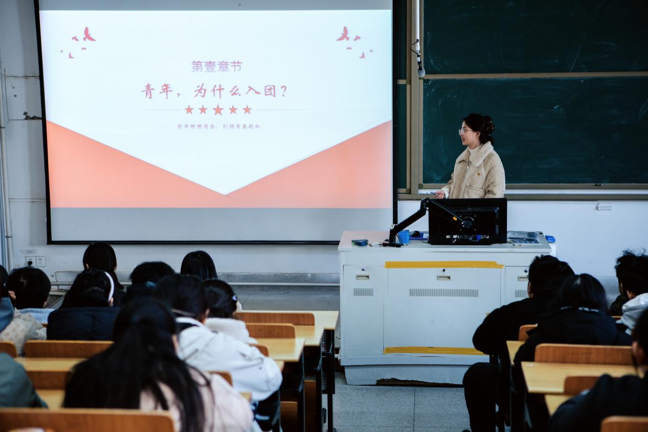 接着,员工第二党支部书记吴林烜老师聚焦入团事宜,详细解读共青团光辉历程、组织使命与团员责任担当,结合校园实例,生动展现共青团在青年成长、校园文化建设里的引领作用,鼓励同学们以青春之我,积极向团组织靠拢,践行“请党放心,强国有我”誓言。