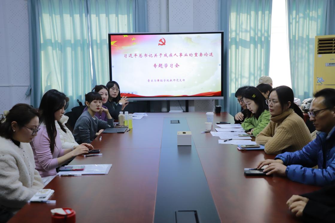 随后,教师党员们又一起学习了总书记的重要讲话内容,老师们认为,一定要强调“一个都不能少”的理念,体党员表示在今后的教学和科研工作中融入残疾人关爱理念,为促进残疾人事业发展贡献专业力量。特别是结合音乐治疗专业特色,支部成员分享了如何通过音乐教育与心理疏导助力特殊人群的实际工作经验。