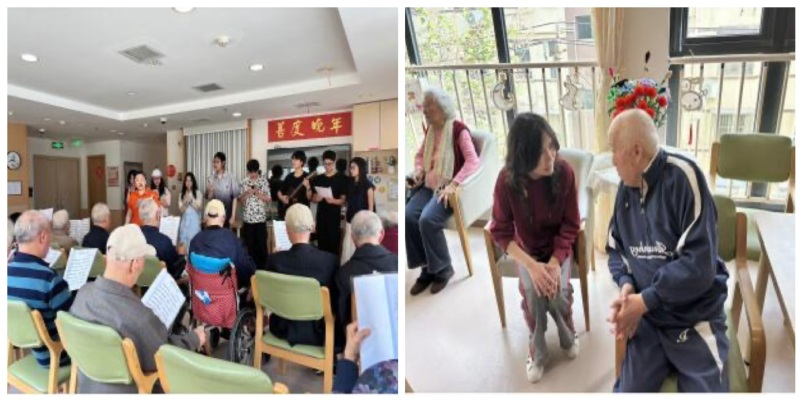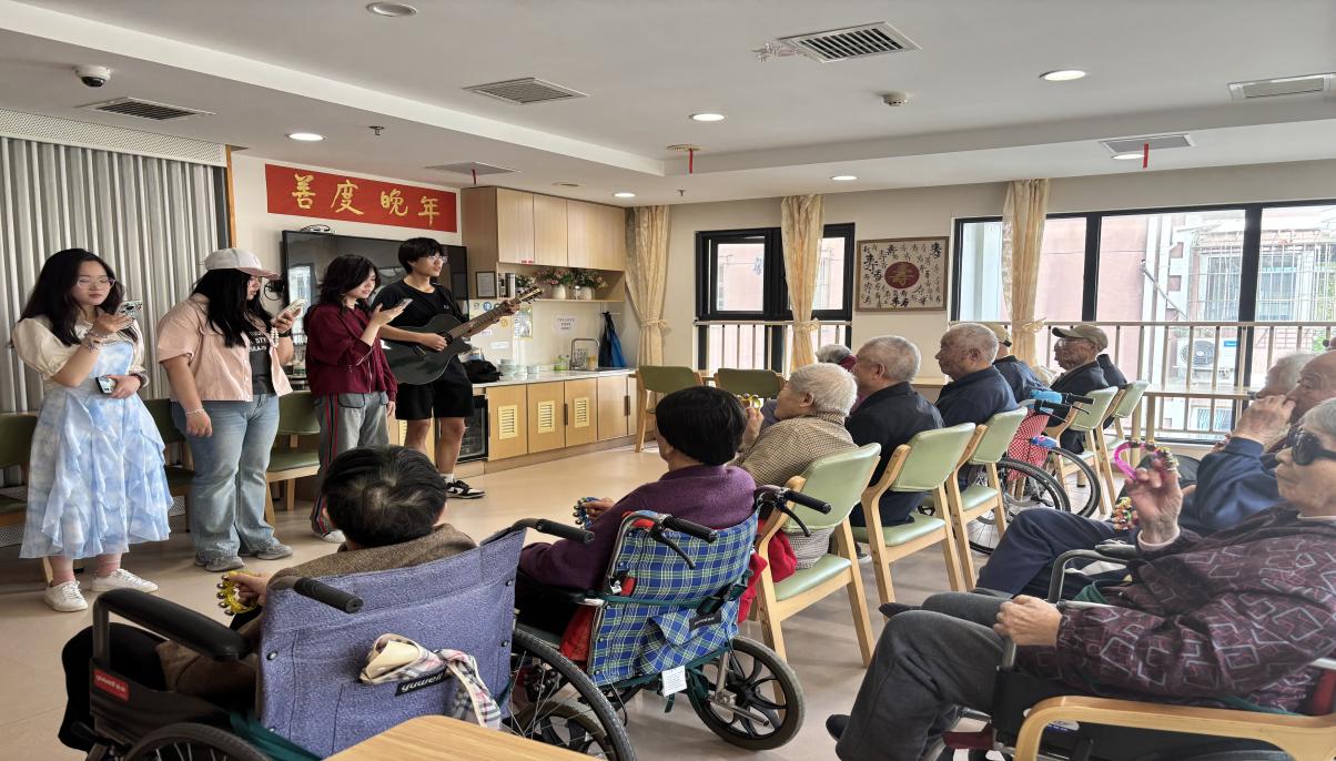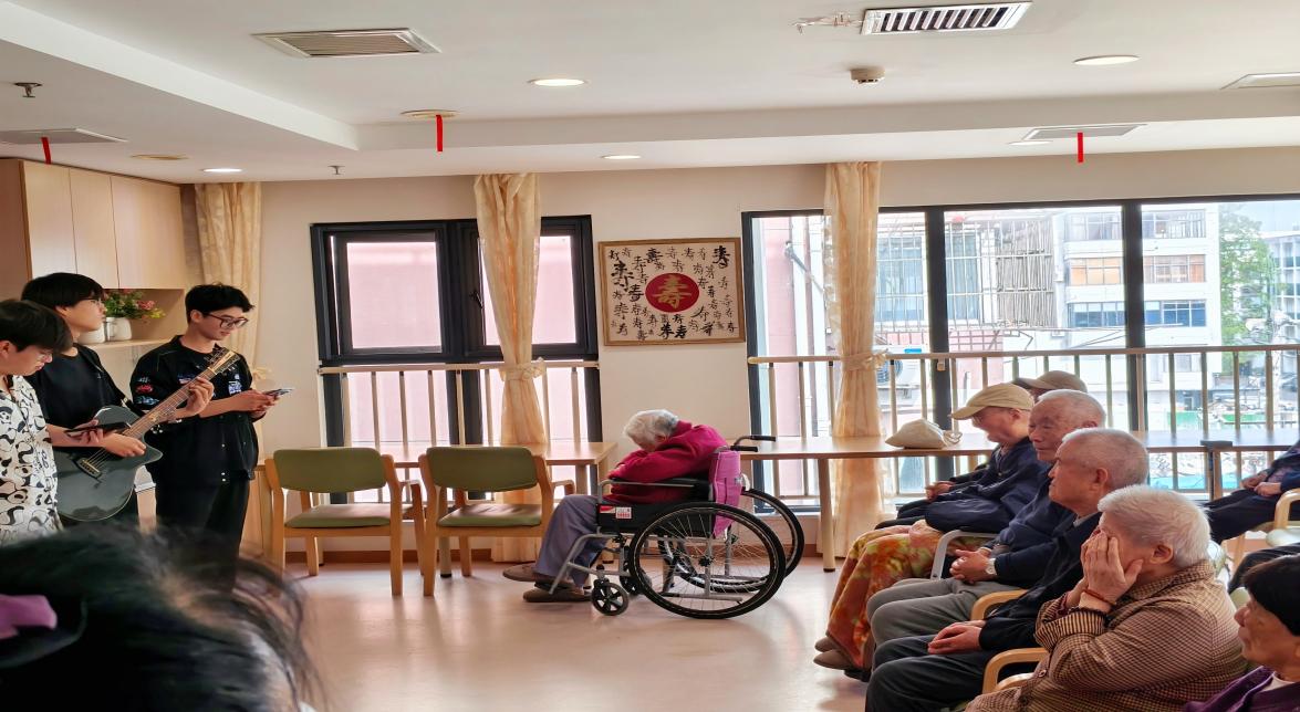 颐养中心内,青春与暮年在此温柔相拥。同学们化身传递温暖的志愿者,以热情的表演为老人们营造了满溢温暖的艺术氛围。婉转歌声如潺潺溪流,淌过岁月沟壑,老人们眼角的笑意被热情点燃,幸福在脸上层层晕染。