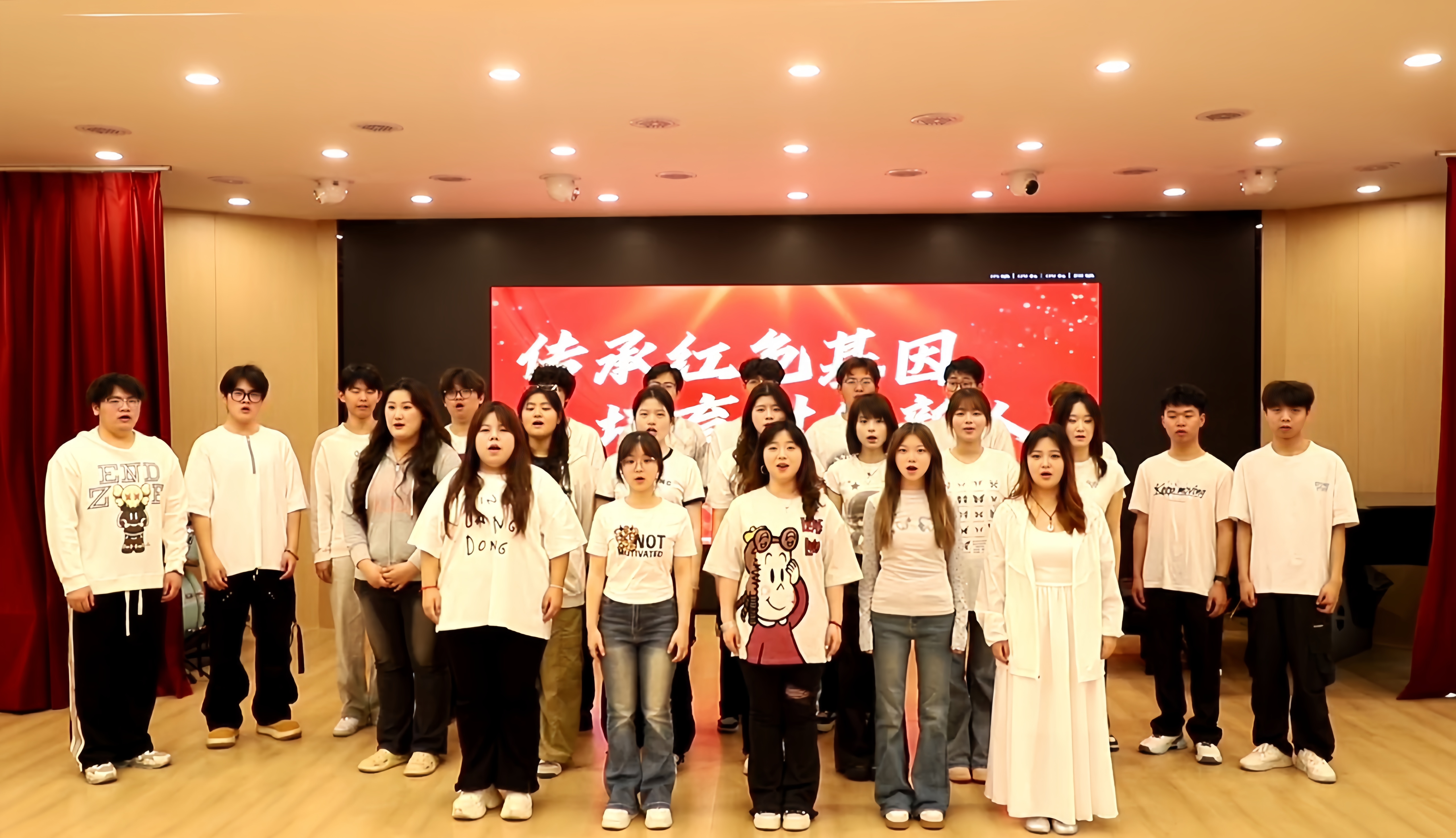 这场演出的背后,是音舞2412班同学们长时间的精心筹备与刻苦磨砺,更是党团组织凝聚力与向心力的生动彰显。在班级团员的先锋模范带头下,大家齐心协力投入排练。从精心挑选最能展现爱国情怀的歌曲选段,到舞台上每一个站位的精准布局、每一个动作的细致设计,无一不是反复斟酌、精雕细琢的成果,充分展现出班级团结一致、奋进昂扬的精神风貌。