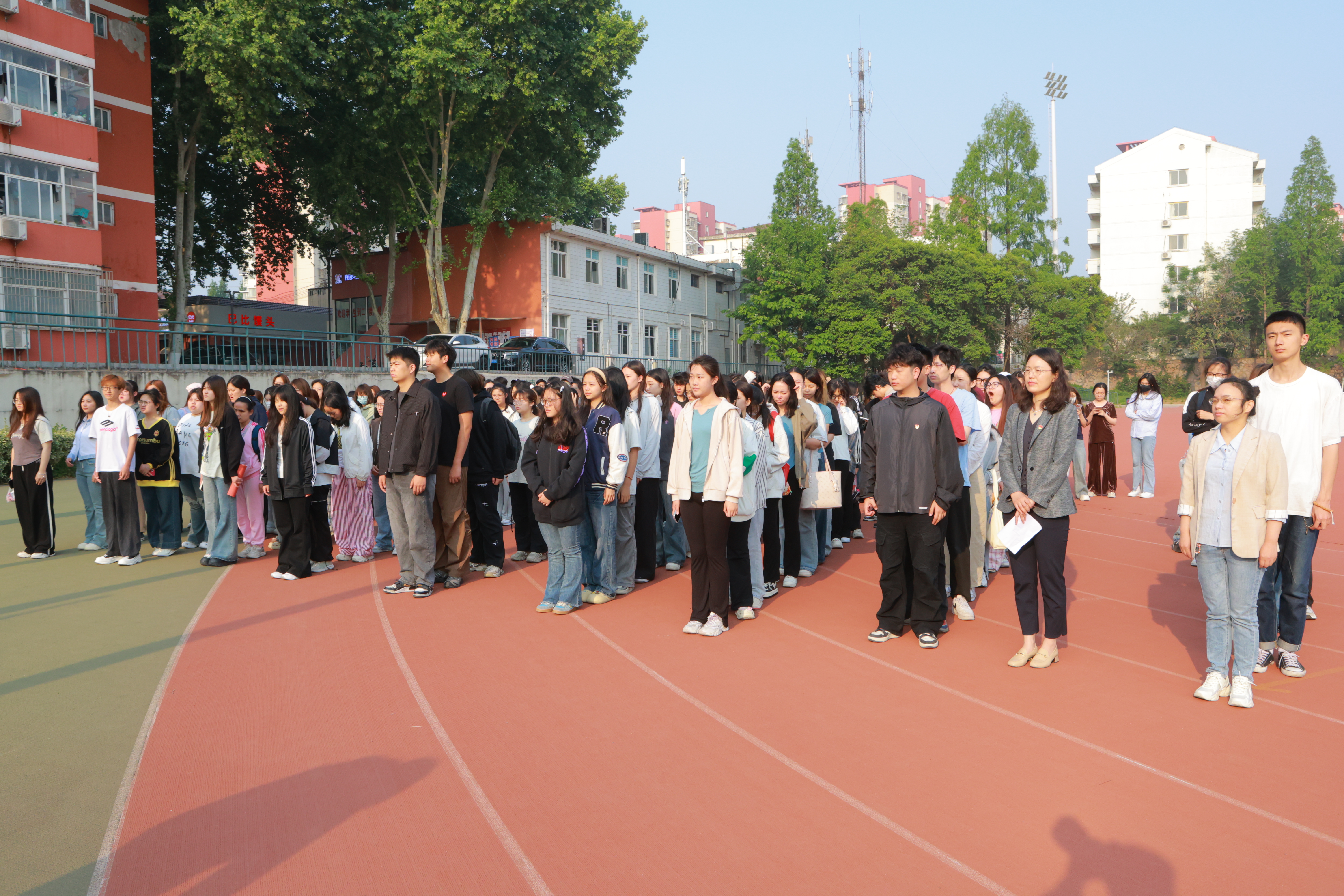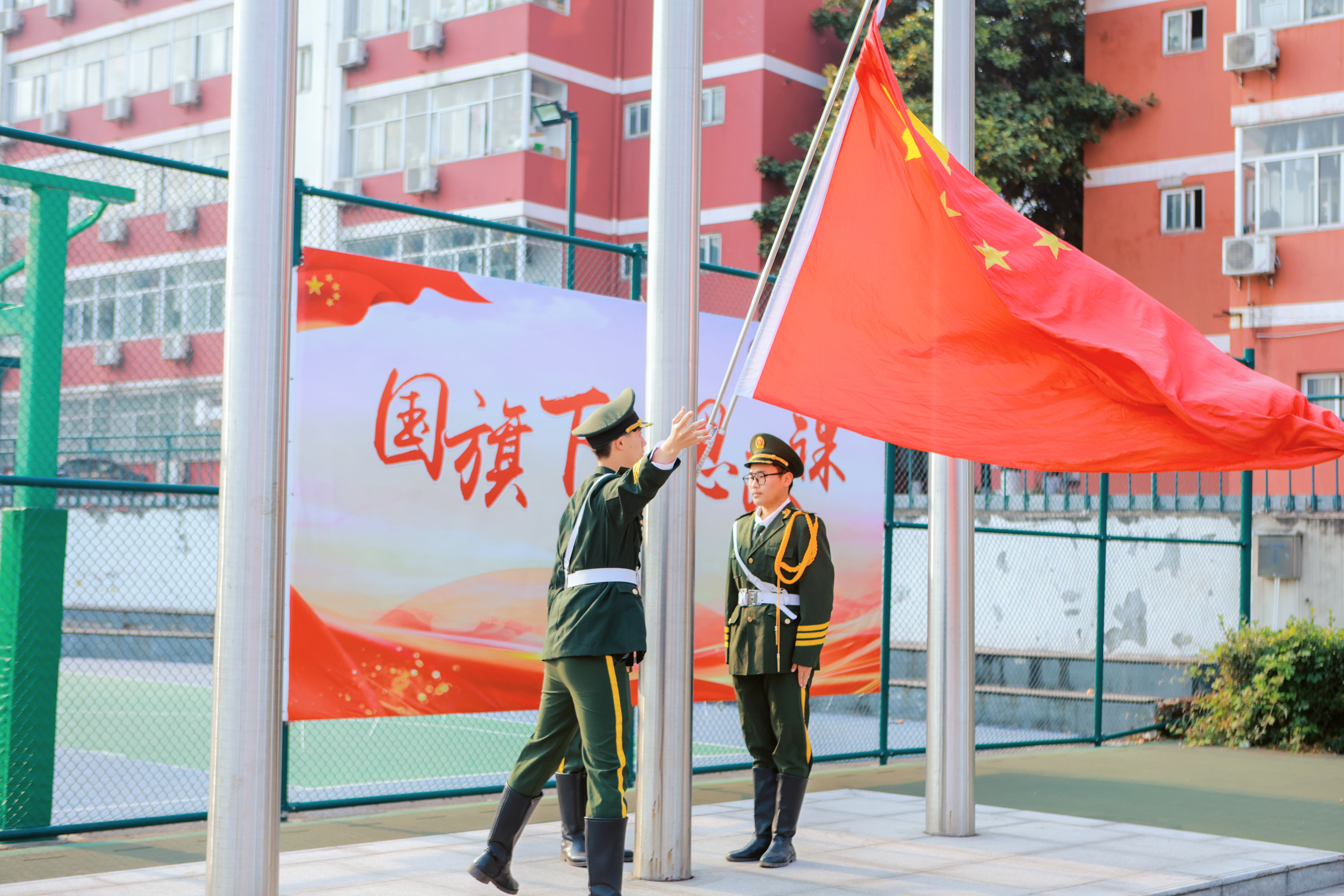4月28日清晨,朝阳初升,在全体师生的庄严注目下,鲜艳的五星红旗在嘹亮的国歌声中冉冉升起。