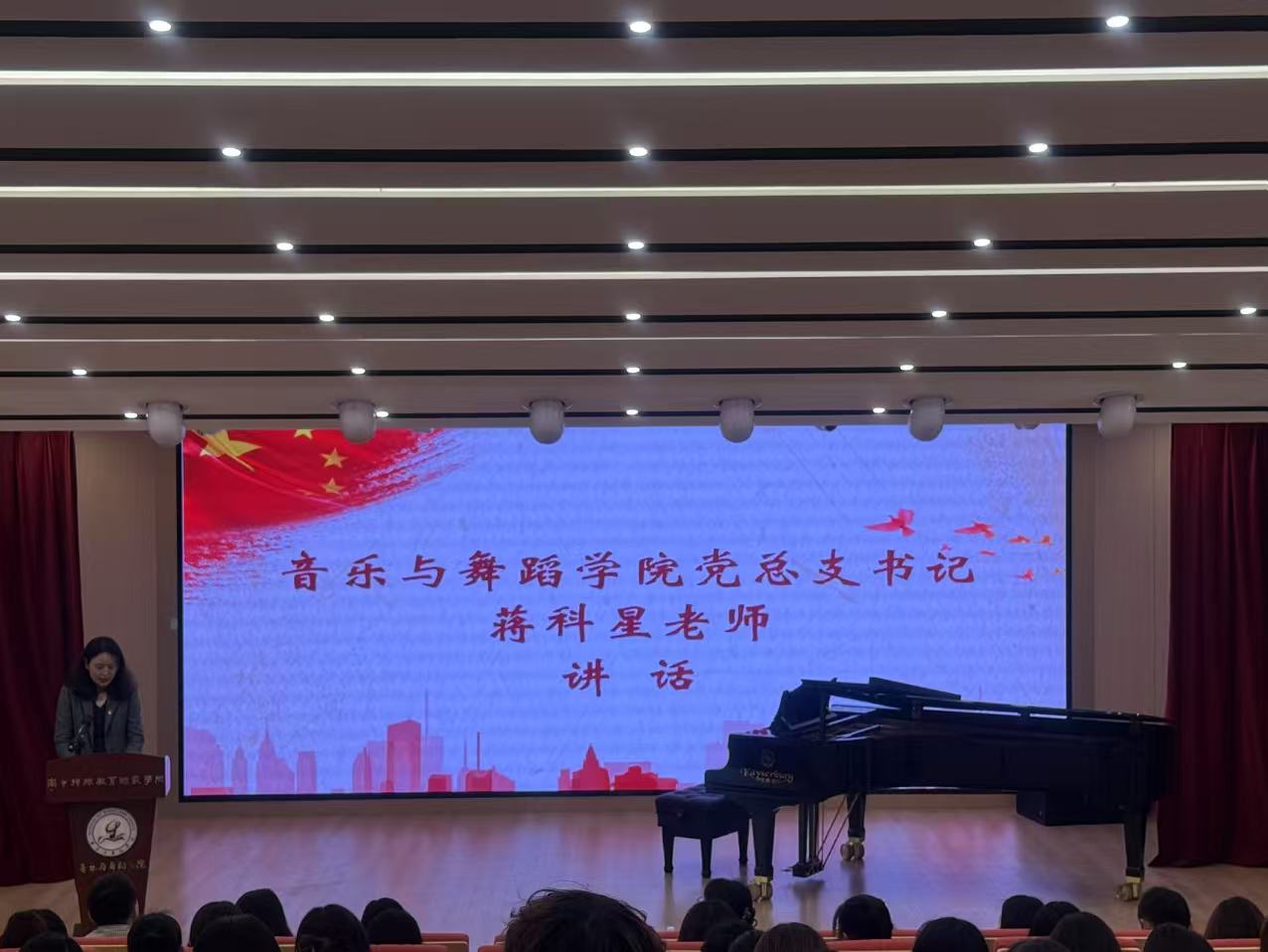 最后,蒋书记号召同学们,作为新时代青年,要赓续五四精神,以文化自信筑牢信仰根基,以创新实践回应时代课题。人工智能时代,科技发展日新月异,有些东西是无法取代的,如情感的温度,而音乐和舞蹈恰恰是连接情感的纽带,她希望同学们积极参加公司校内外各项实践,不断锤炼自我,在提升专业素养的同时,坚定文化自信、厚植爱国情怀。