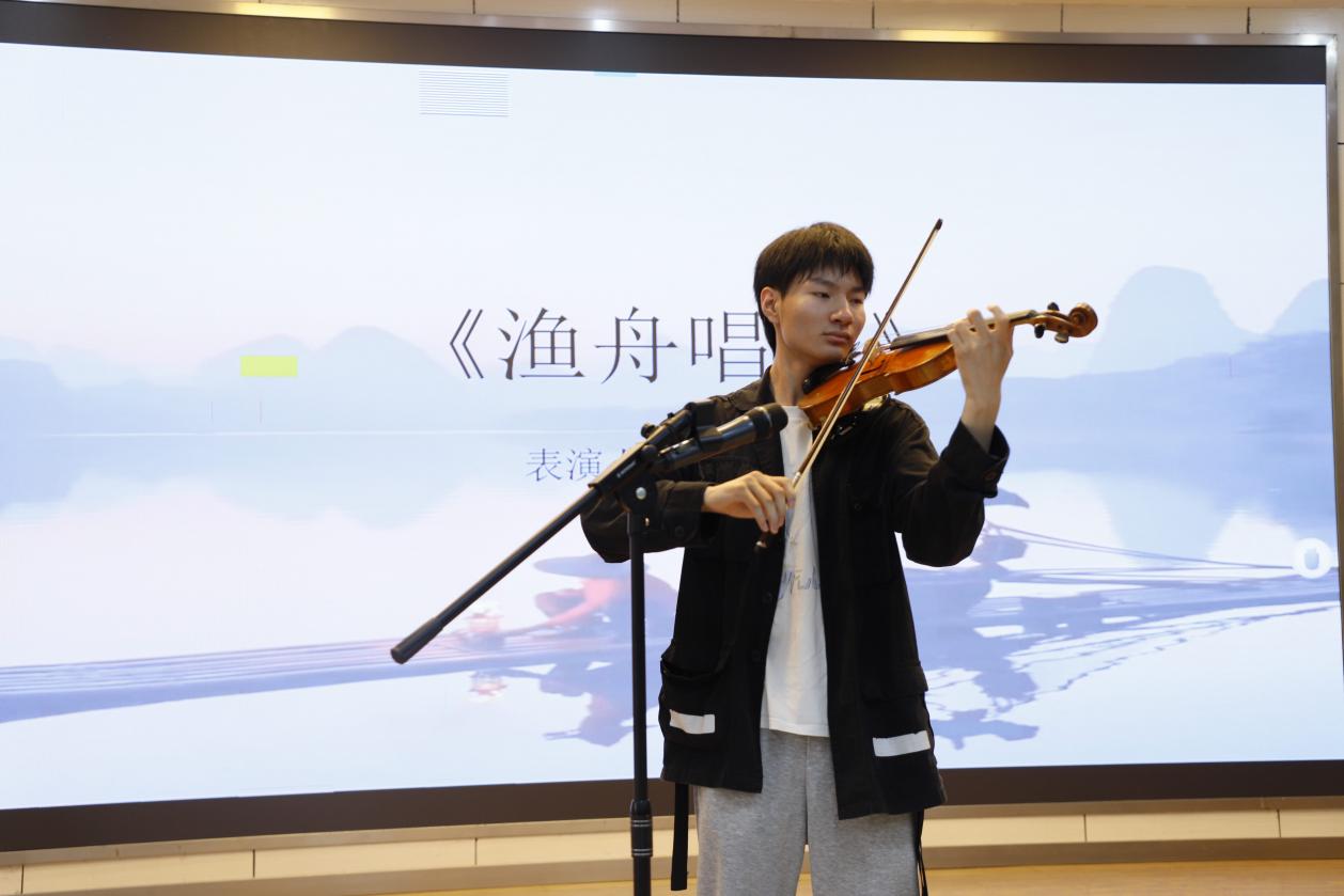 传统艺术表演同样精彩纷呈。谢屿涵、冯路晓涵同学带来的古典舞《寄明月》以柔美而富有力量的舞姿,展现中华优秀传统文化的独特魅力;刘铮鸣同学的小提琴独奏《渔舟唱晚》融合东西方音乐元素,悠扬的旋律令人沉醉。