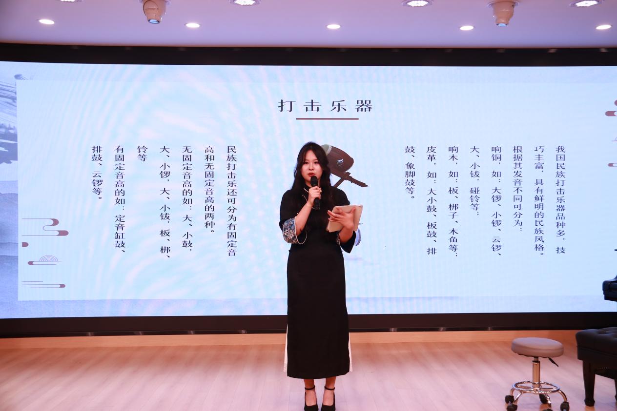 紧接着,一场精彩的传统乐器演奏拉开帷幕。表演者技艺精湛,二胡、古筝等乐器轮番登场,悠扬的旋律和灵动的音符为师生们带来一场听觉盛宴,充分展现了中国传统乐器的独特韵味。演奏结束后,叶昱辰结合多媒体演示与实物展示,深入浅出地讲解了各类民族乐器的历史渊源、构造特点及演奏技法。中员工们兴致勃勃,积极提问,现场俨然成为一堂生动的音乐通识课。