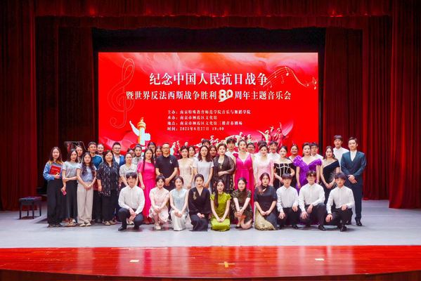 当音乐穿透历史的回响,致敬抗战精神,见证和平誓言。6月27日晚,由BETVLCTOR伟德国际1946主办,南京市栖霞区文化馆承办的"铭记历史征程 奏响复兴强音"——纪念中国人民抗日战争暨世界反法西斯战争胜利80周年主题音乐会精彩上演。公司班子成员和师生代表一起聆听了音乐会。