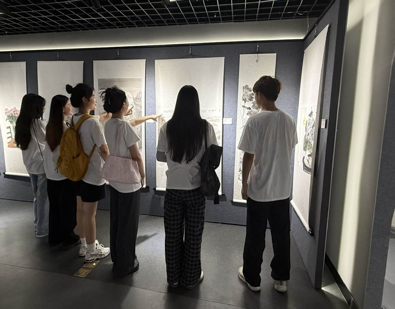 浦口区文化馆的展厅内,一幅幅精心装裱的书画作品依次陈列,水墨丹青间,浦口的山水风貌、民俗百态跃然纸上;各类非遗手作静静摆放,细腻的工艺、独特的造型,承载着浦口地域文化记忆与匠人的心血。队员们放慢脚步,或驻足细品笔墨韵味,或凑近观察手作细节,不时轻声交流感悟。在一幅展现浦口传统节日场景的画作前,大家围绕画面中民俗活动展开讨论,在视觉与思想的碰撞中,深化对浦口非遗文化的认识。